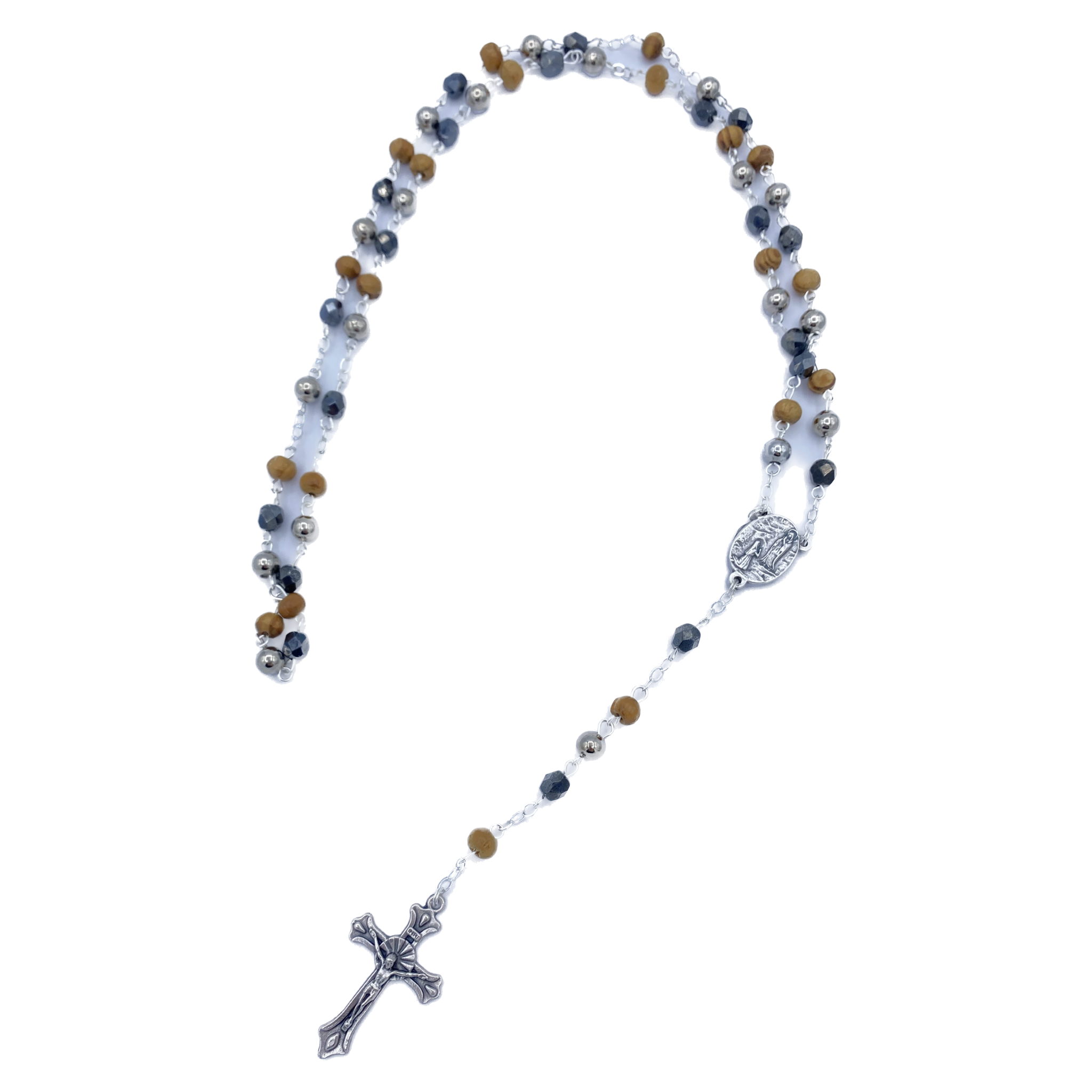チェーン付きウッド/クリスタル ロザリオ