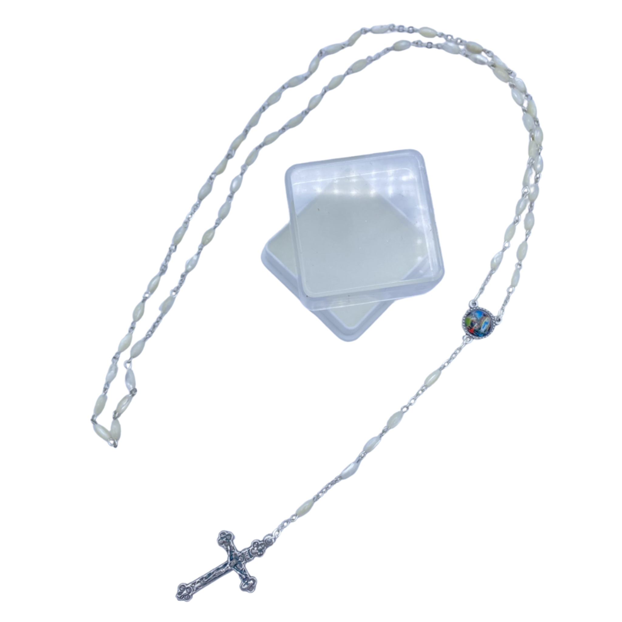 小さな楕円形のマザーオブパールロザリオ