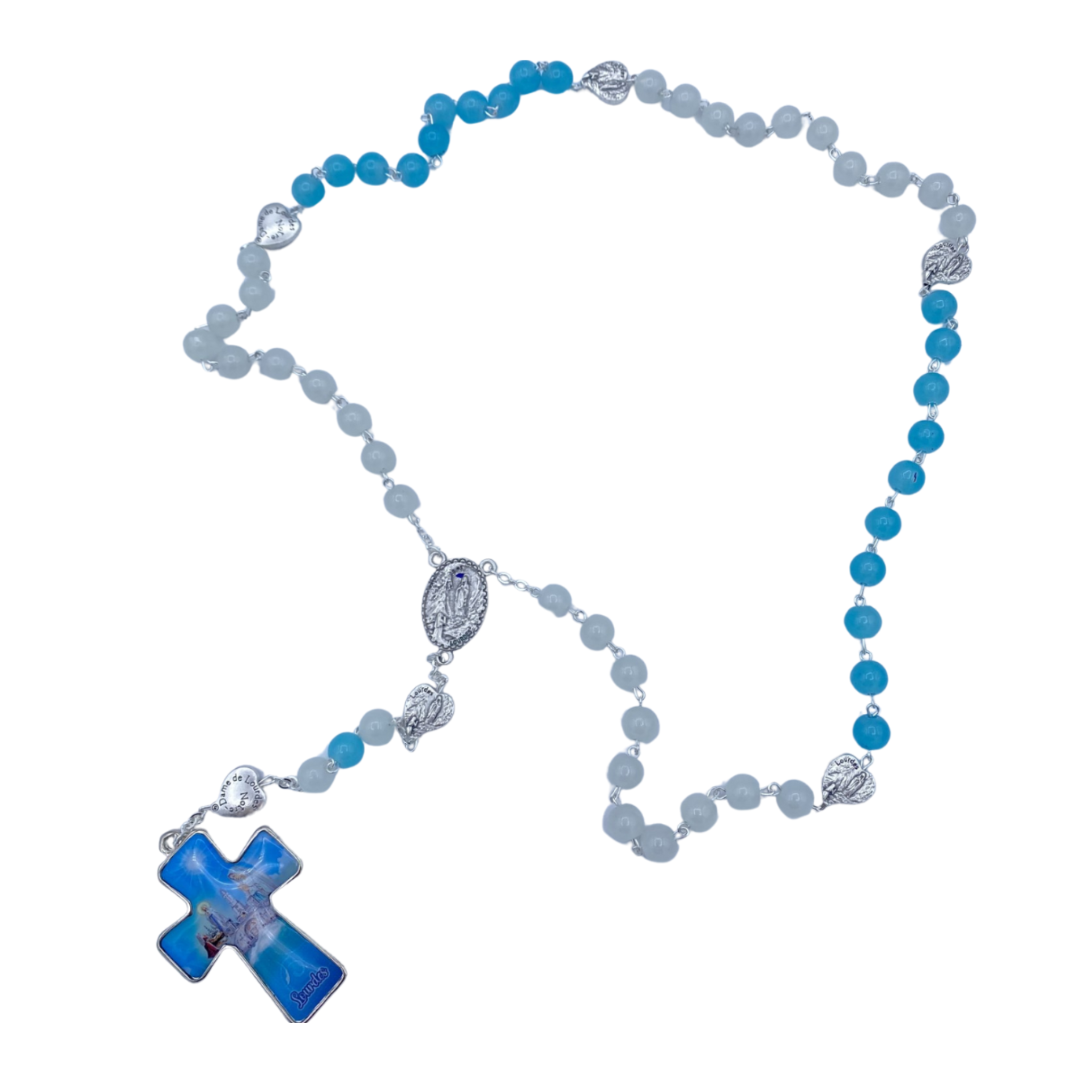 파란색과 흰색 묵주 - 앱 크로스 - PATER HEART