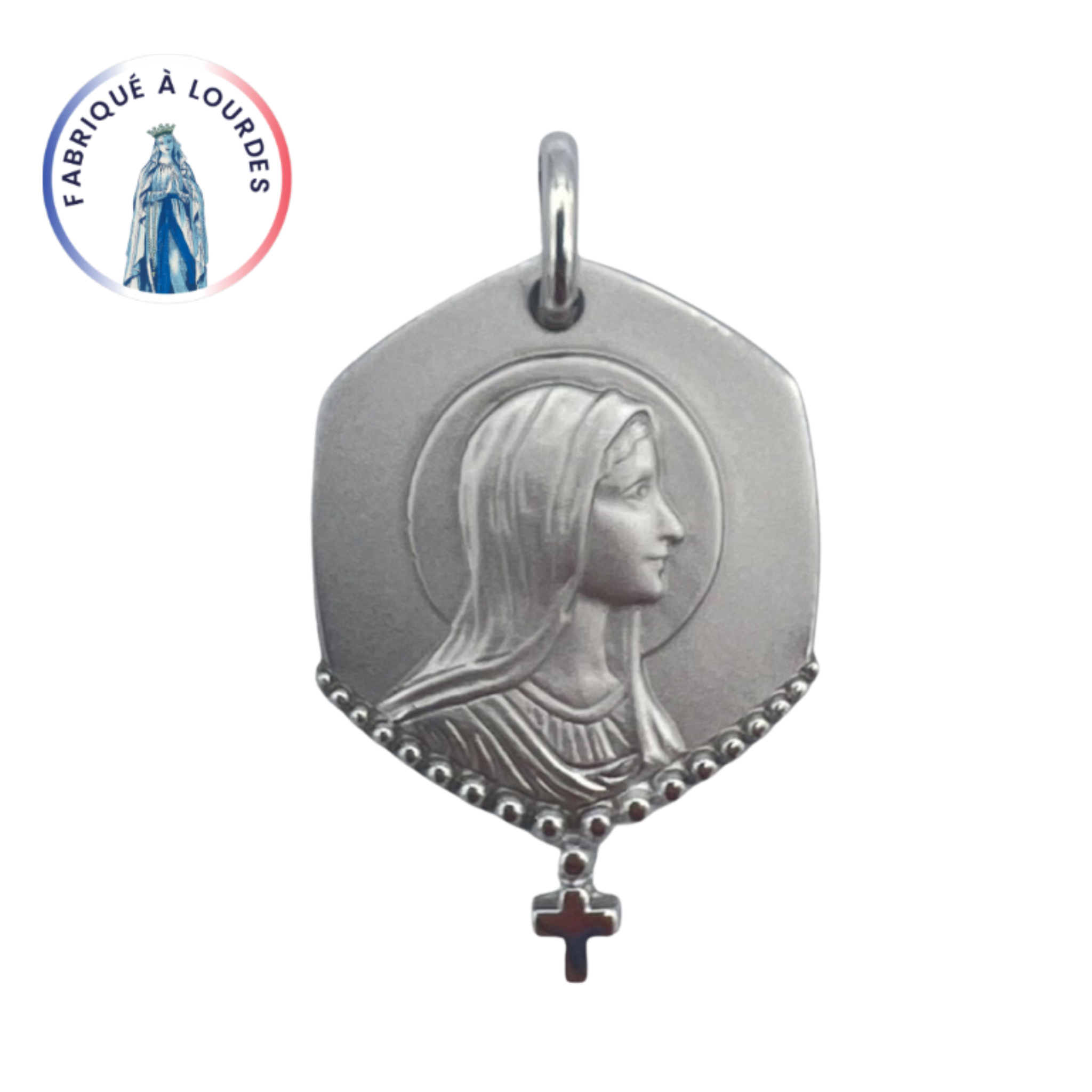 팔각형 은메달, 성모 마리아의 옆모습을 나타냅니다.